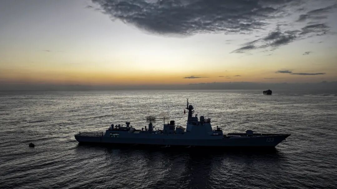 ▲便捷行动后的包头舰与商船任科摄